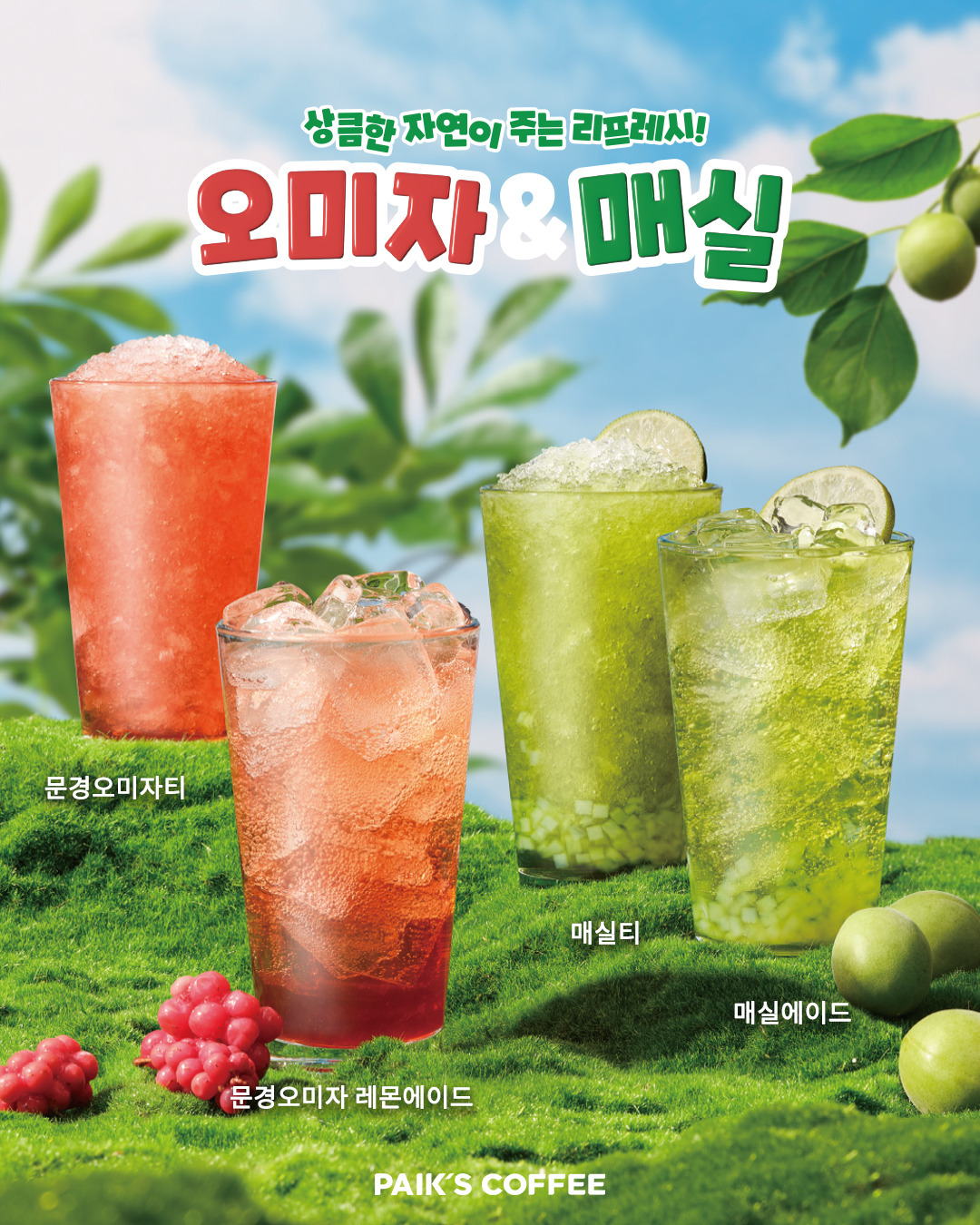 빽다방은 문경오미자티를 비롯해, 오미자에 레몬의 상큼함을 더한 문경오미자레몬에이드까지 선보였습니다. 특히 문경오미자레몬에이드는 첫 모금에서 레몬의 상큼함이 느껴지고, 이어 오미자의 은은한 향이 남아 새콤달콤하게 즐길 수 있는 것이 특징이며, 갈증해소에 최적화된 음료로 출시했습니다.