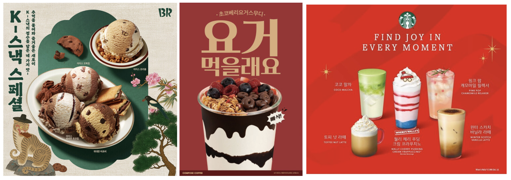 이미지 출처: 베스킨라빈스, 컴포즈커피, 스타벅스 |